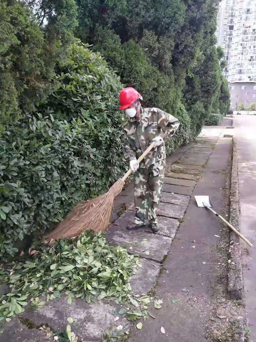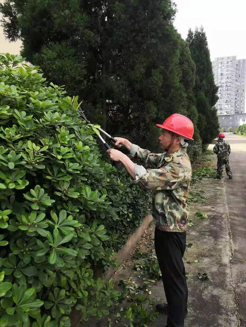 第三糧庫利用五一假期組織職工修剪綠化帶,美化庫區(qū)環(huán)境。(吳 杰)
