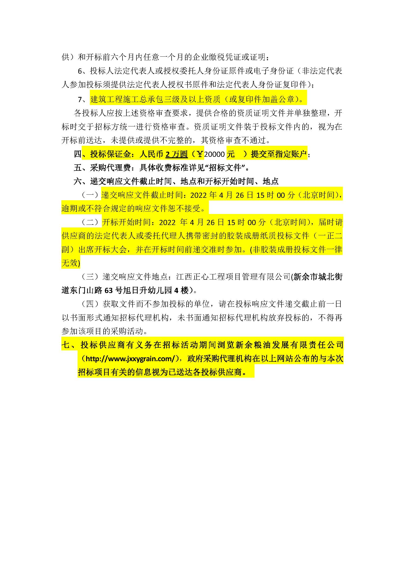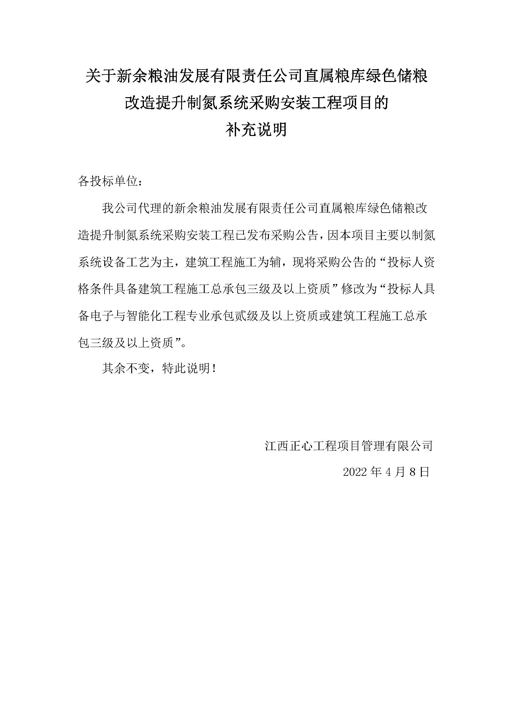 新余現(xiàn)代糧食產(chǎn)業(yè)園糧庫綠色儲糧改造提升制氮系統(tǒng)采購安裝工程公告
